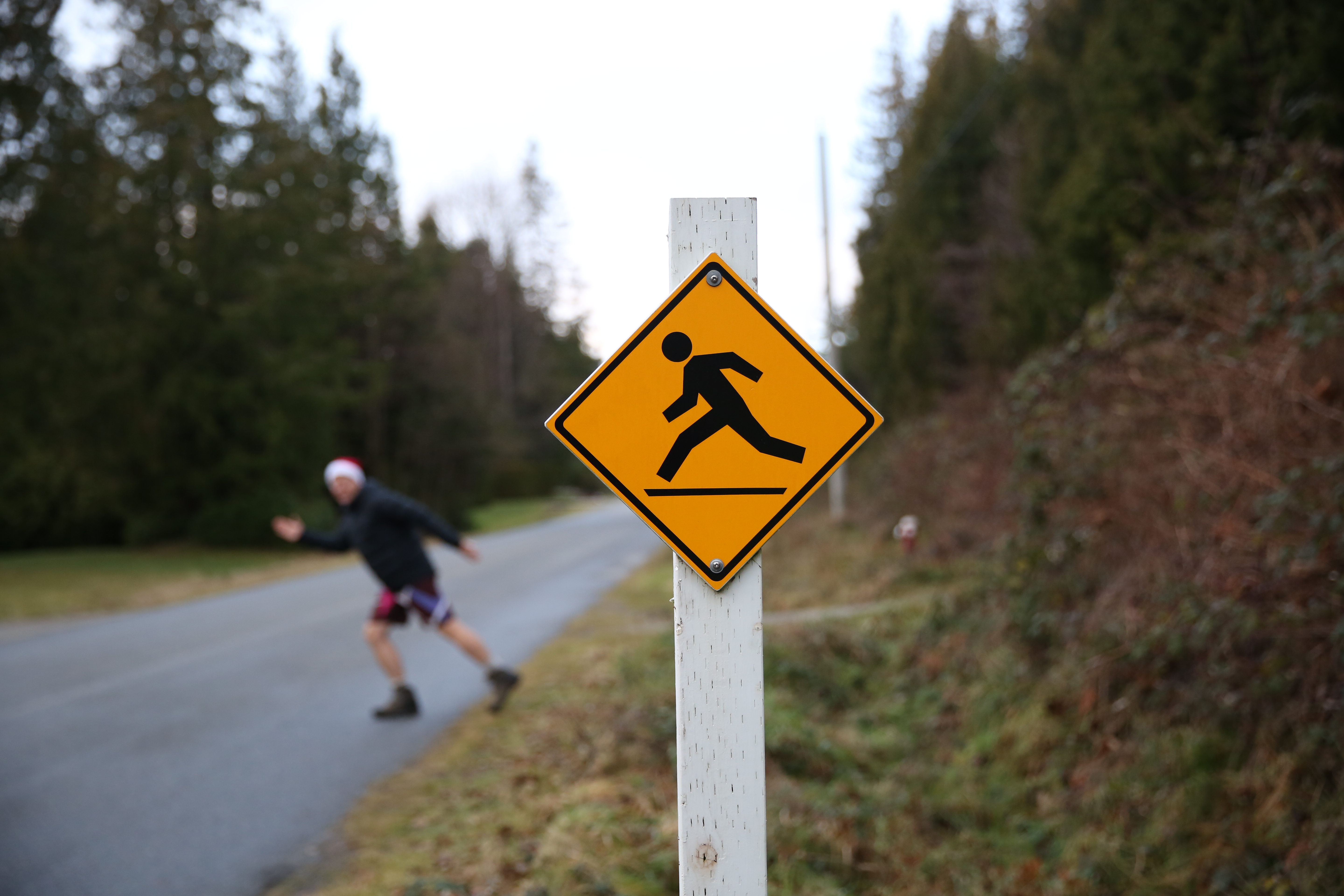 My brother poses for a roadside photo. Sechelt, BC.