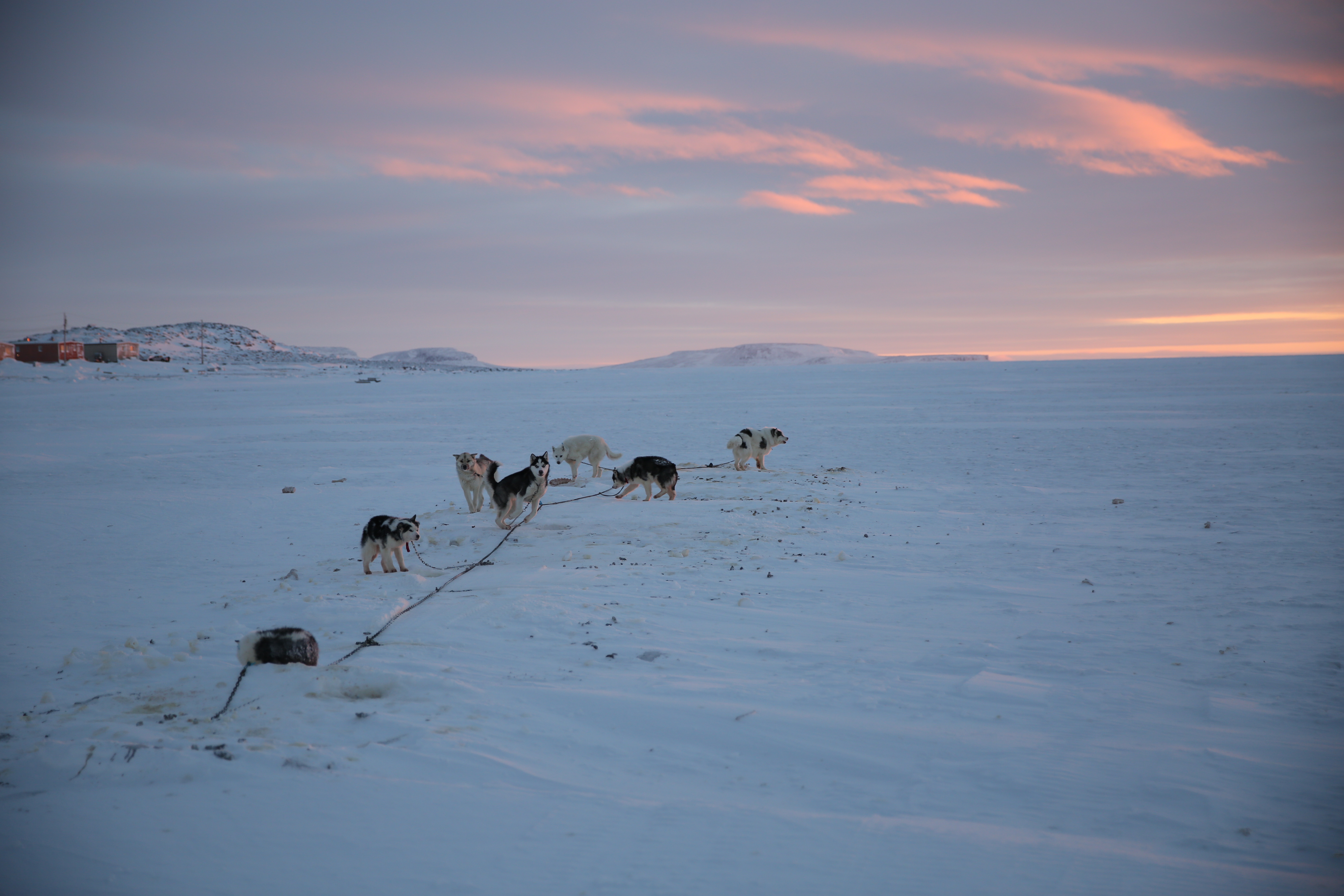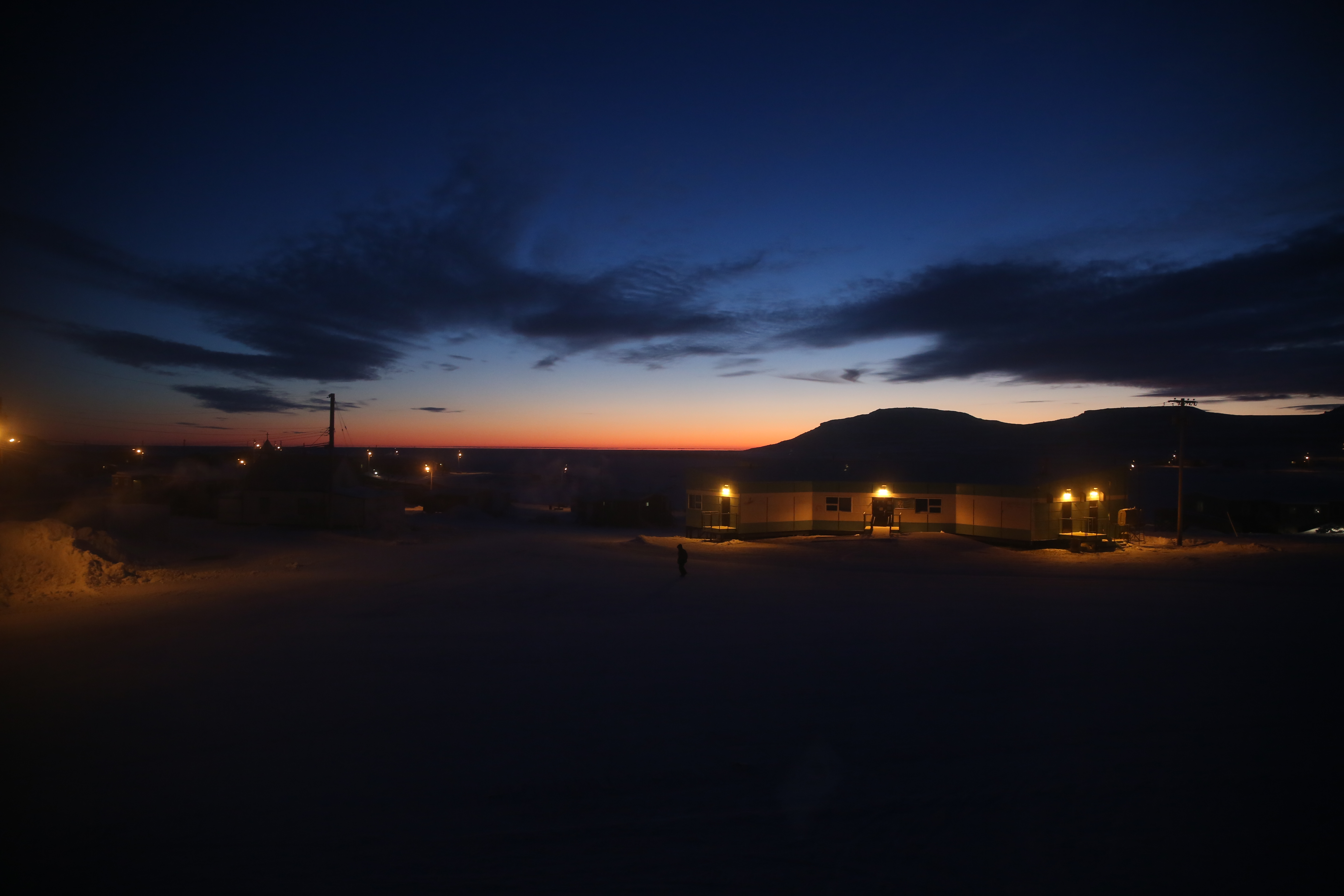 The midday sun skirts the horizon of the Canadian arctic. Ulukhaktok, Northwest Territories.